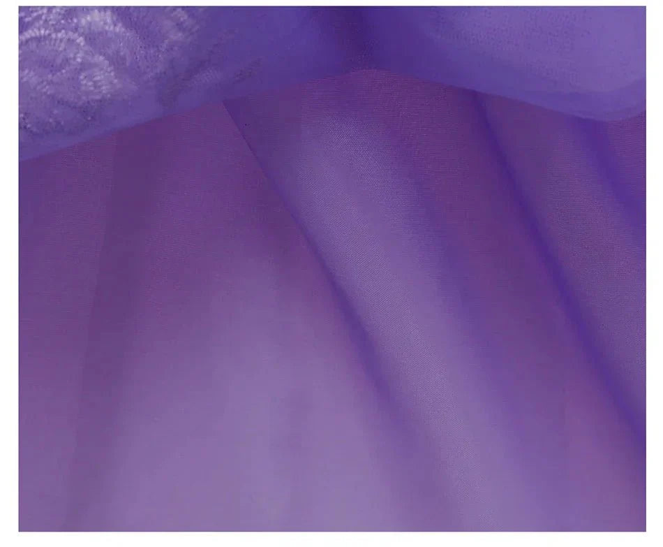 Transform your little one into a fairytale princess with this enchanting purple and pink gown. Featuring puff sleeves, delicate embroidery, and layers of soft tulle, it’s the perfect costume for birthdays, Christmas, Halloween, or everyday dress-up play.